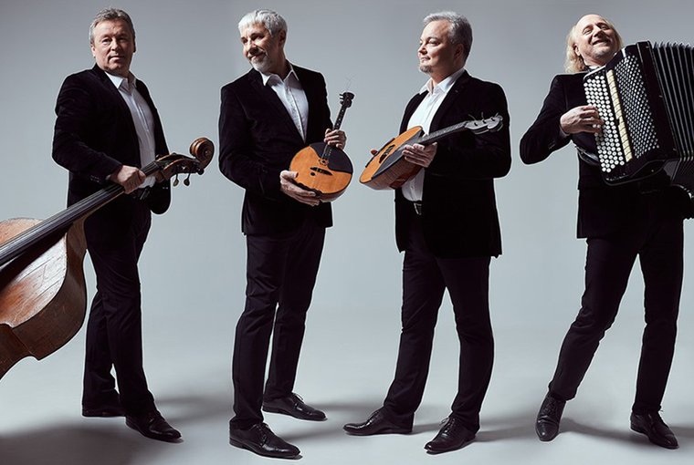 «Терем-квартет» – две домры, баян и контрабас – уже давно стал для зрителей всего мира одним из самых узнаваемых символов русской культуры. Завораживающе живое искусство «Терем-квартета» обладает невероятно мощным позитивным зарядом. В каждой программе – вся гамма настроений: от бесшабашной радости и лирических откровений до утонченного лицедейства. Участники ансамбля – истинные виртуозы в своем жанре, дающие классическим произведениям новую жизнь, благодаря искрометным аранжировкам и тембровым метаморфозам.