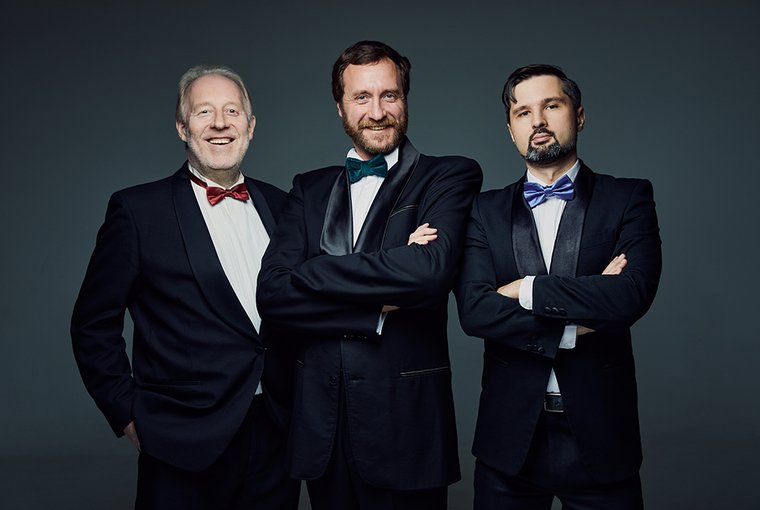 Любимые мелодии из кинофильмов прозвучат в самом невероятном формате – в исполнении трех русских басов-профундо, обладающих самыми низкими голосами. «Есть только миг» из «Земли Санникова», «Не обещайте деве юной» из кинофильма «Звезда пленительного счастья», Песня о друге из кинофильма «Вертикаль», «Ваше благородие, госпожа Разлука» из «Белого солнца пустыни», Песня мушкетеров из телефильма «Д’Артаньян и три мушкетера», «А цыган идет» из «Жестокого романса», песенка из «Карнавальной ночи», «Я шагаю по Москве» из одноименного фильма и многие-многие другие хиты из незабываемых кинолент исполнит ансамбль, не имеющий аналогов в мировой практике. В его составе объединились заслуженный артист России Владимир Миллер, заслуженный артист Республики Карелия Михаил Круглов и солист Концертного хора Санкт-Петербурга Павел Андреев. Сливаясь вместе, их голоса образуют неповторимое, почти органное звучание. Их пение действует на публику завораживающе. Знакомые мелодии обретают в их исполнении мощь, глубину и особое обаяние. Певцам аккомпанирует великолепный ансамблист, доцент Санкт-Петербургской консерватории, пианист Михаил Бузин.