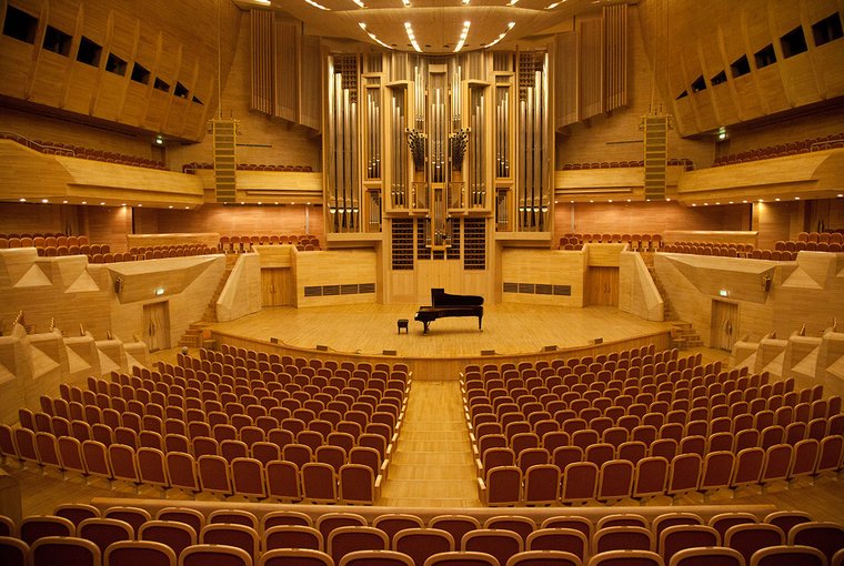 Зал имени Е.Ф. Светланова ММДМ рассчитан на 1755 мест и предназначен для проведения концертов классической и популярной (джазовой, эстрадной и др.) музыки. Он облицован сибирской лиственницей – лучшим в мире «акустическим» деревом. Обработка всех стен, пола и значительной части потолка единым материалом создает композиционную целостность зала. В Зале имени Е.Ф. Светланова установлена уникальная акустическая системы «Constellation» мирового лидера в области звуковых технологий компании «MEYER SOUND». Зал имени Е.Ф. Светланова Московского международного Дома музыки украшает уникальный, самый большой в России орган, выстроенный всемирно известным консорциумом немецких фирм Glatter Gotz (Овинген) и Klais (Бонн).