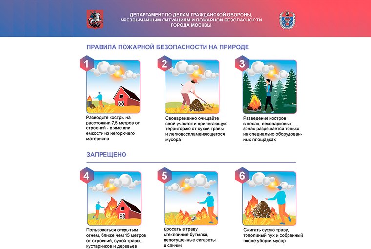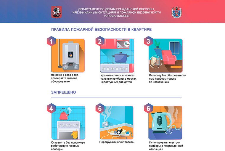 Департамент по делам гражданской обороны, чрезвычайным ситуациям и пожарной безопасности города Москвы разработал информационные материалы в целях предотвращения и устранения последствий чрезвычайных происшествий, а также для обеспечения противопожарной защиты в Москве.
