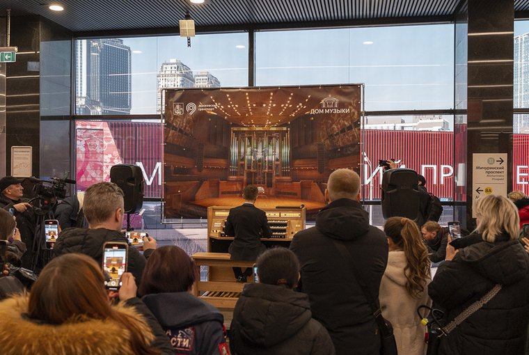 Концерт на станции метро «Мичуринский проспект» приурочили к 20-летию со дня торжественного открытия большого концертного органа Светлановского зала ММДМ.